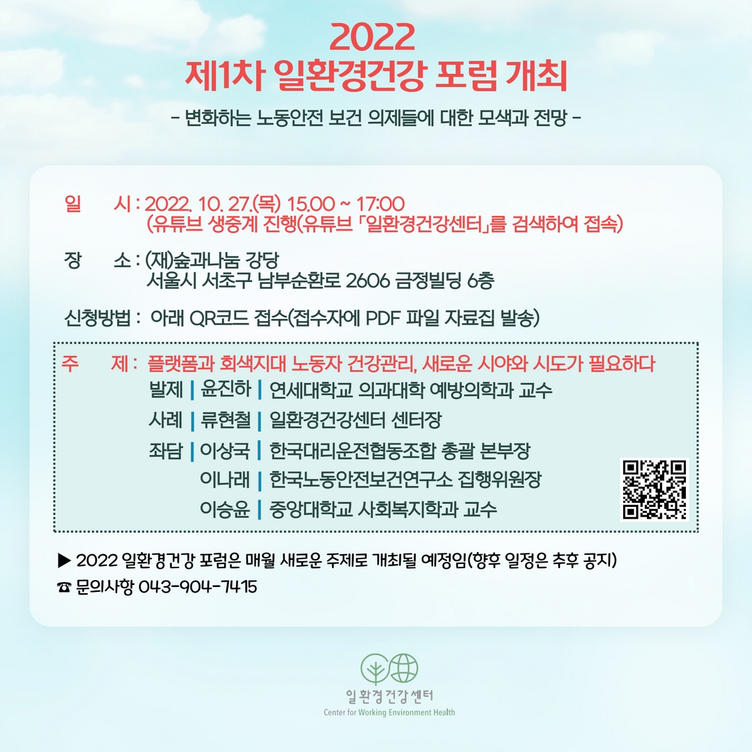 ³ëµ¿¾ÈÀüº¸°Ç¿¡ ´ëÇÑ ´Ù¾çÇÑ ÁÖÁ¦·Î ¸Å¿ù °³ÃÖµÉ ¿¹Á¤ÀÌ¿À´Ï