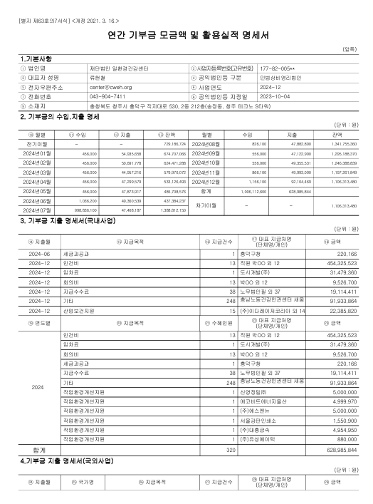 2024³â ¿¬°£ ±âºÎ±Ý ¸ð±Ý¾× ¹× Ȱ¿ë½ÇÀû ¸í¼¼¼¸¦ ¼öÁ¤°ø½ÃÇÏ¿© Àç°øÁöÇÕ´Ï´Ù.